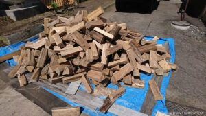 ご高齢のお得意様にお届け。 ヤチダモの割り薪。